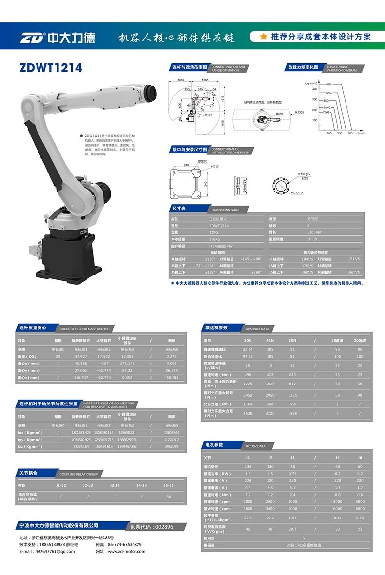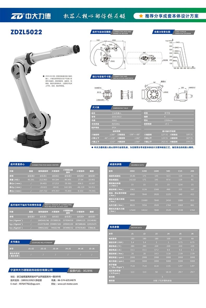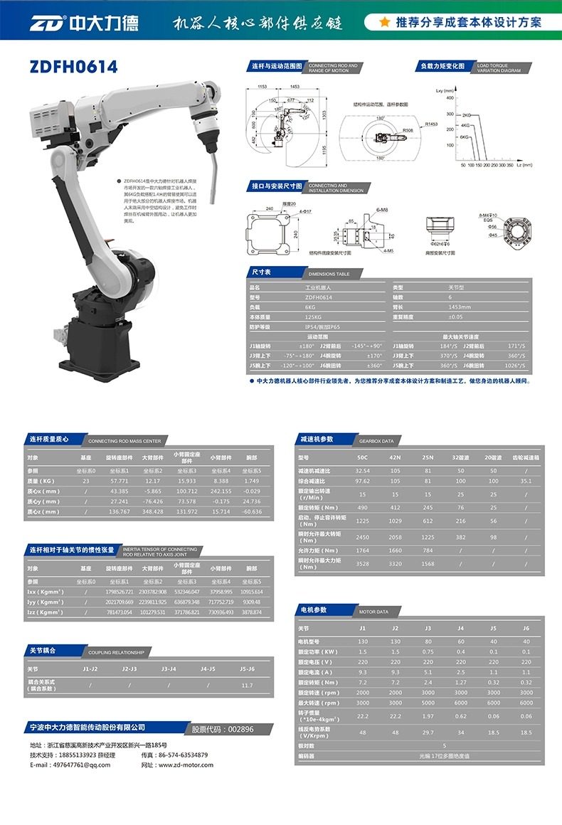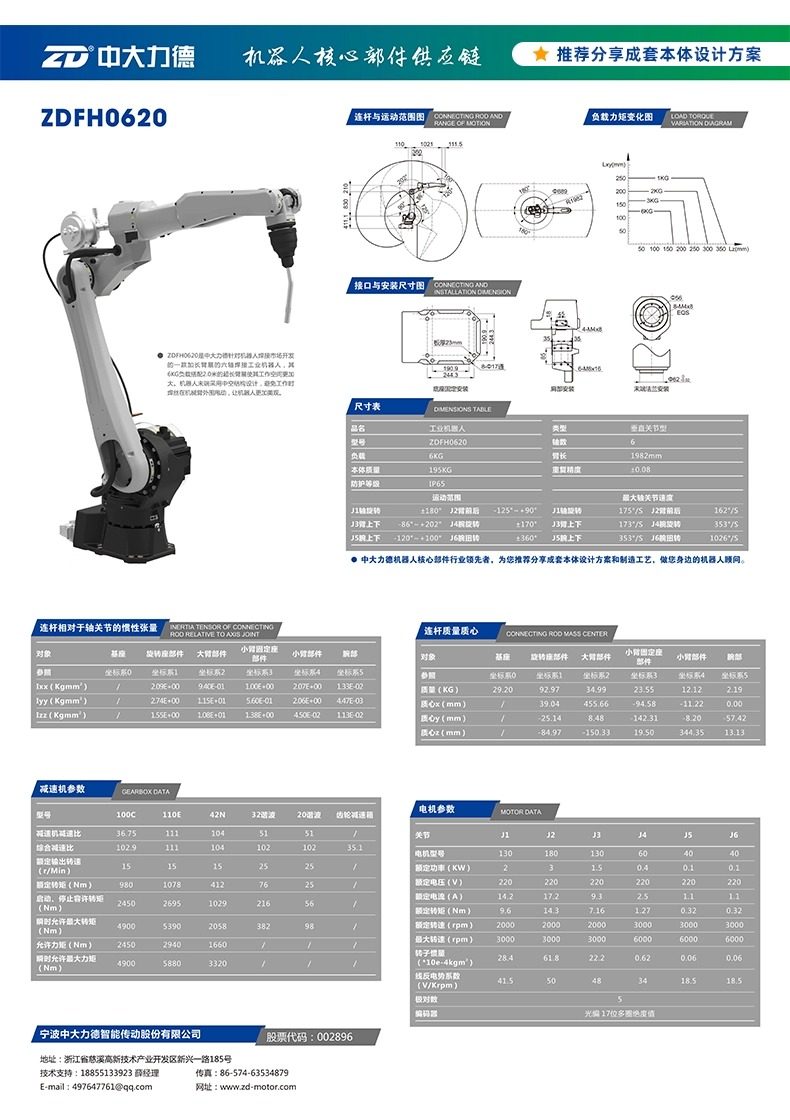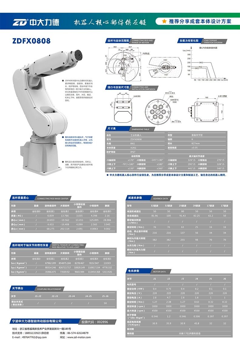 中大电机工业机器人本体码垛焊接机械手六轴大负载机械臂 可贴标