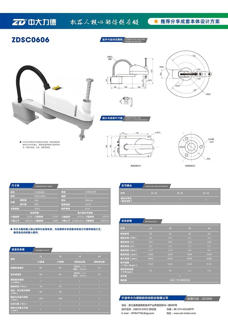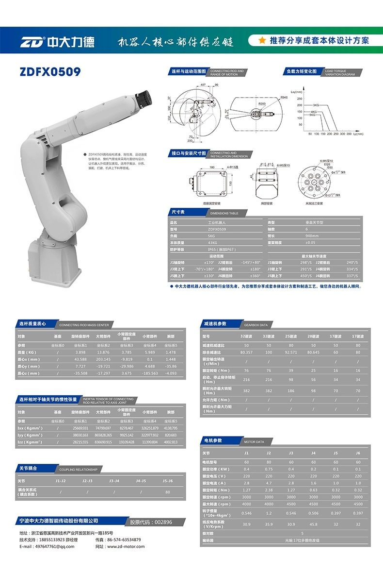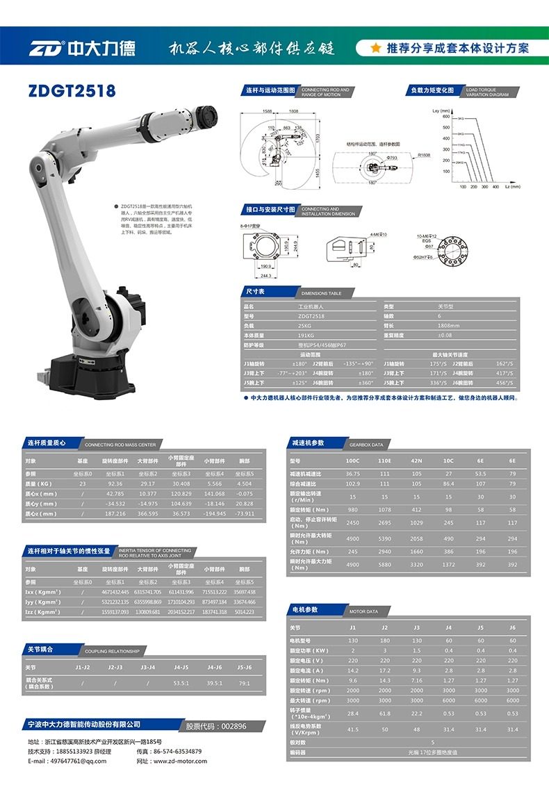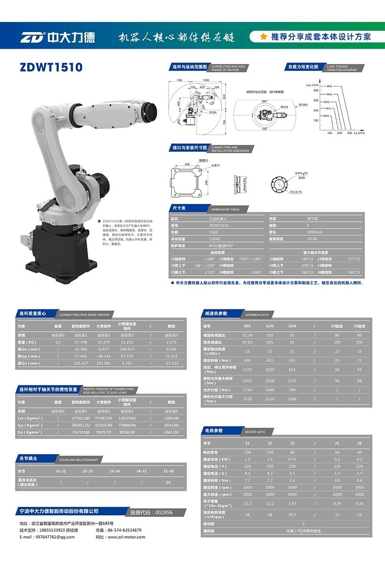 中大电机工业机器人本体码垛焊接机械手六轴大负载机械臂 可贴标